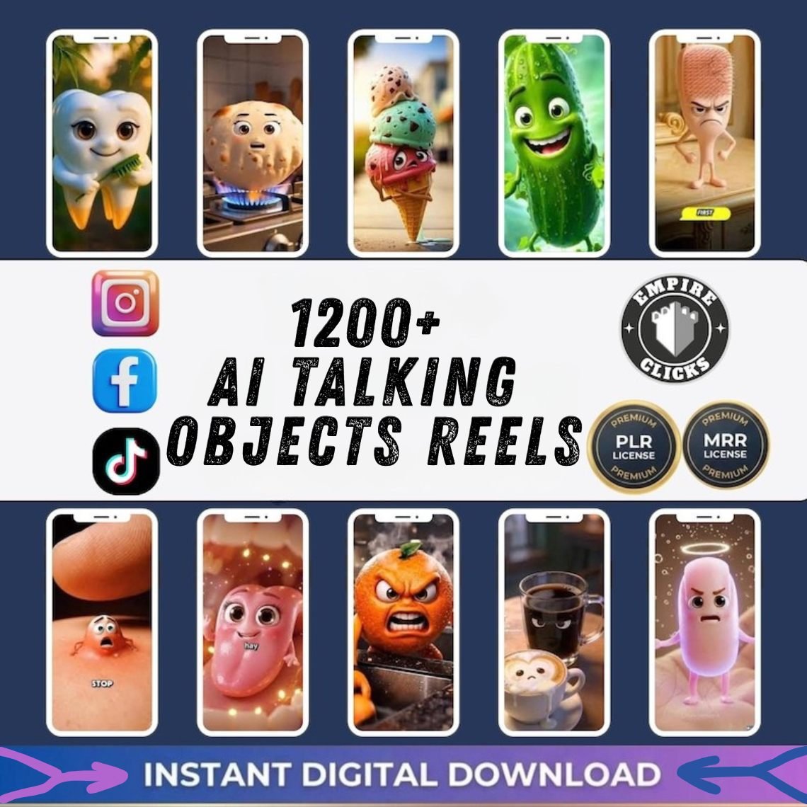 1200+ AI Talking Object Videos | Viral Reels Bundle | TikTok Instagram YouTube Shorts | Canva Editable | PLR MRR Resell Rights | AI Cat Bonus Included